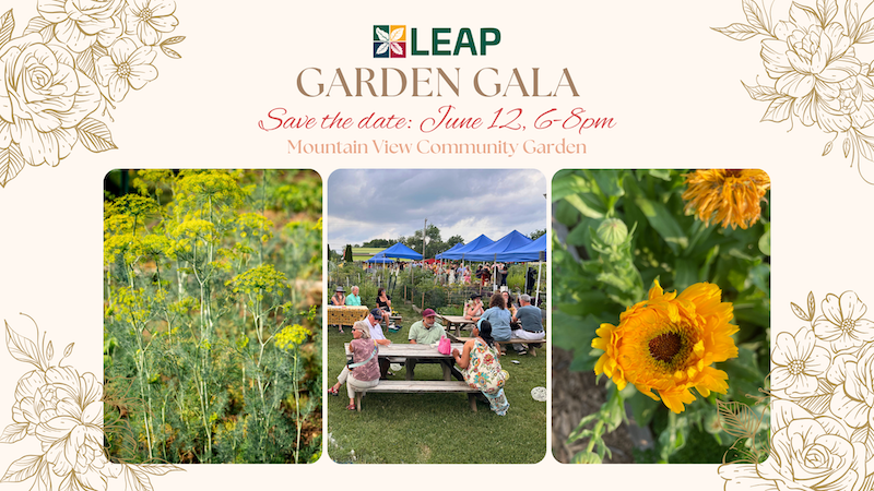 We're thrilled to host the Garden Gala again this year at Mountain View Community Garden on June 12th, 2026 from 6-8pm. Bring your friends and family to this fun and casual evening in the garden!