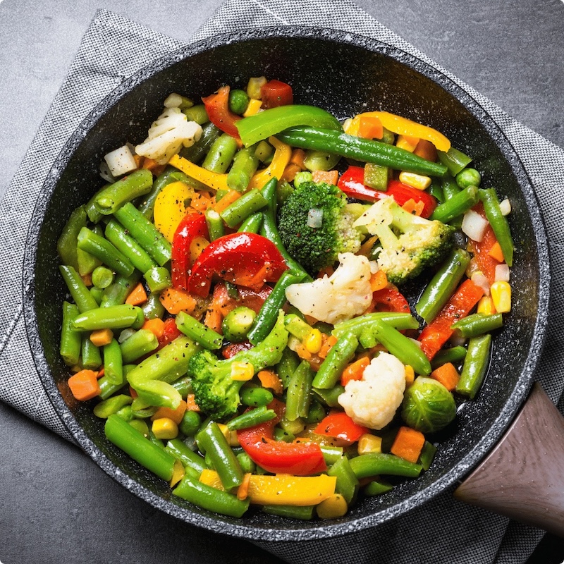 - Carefully add the stir fry mix and stir and toss so everything cooks evenly. Add in the garlic.